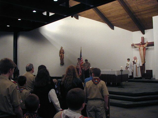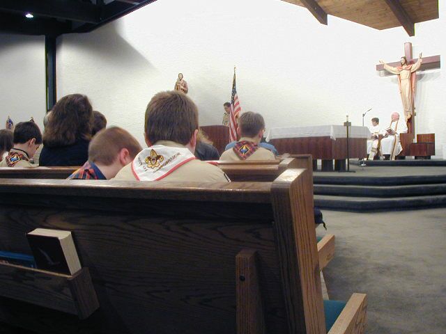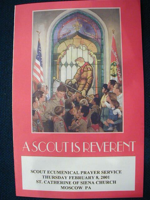 On February 8, 2001, scouts from Troop 132's Pius XII Award class hosted the annual Ecumenical Service at St. Catherine of Siena Church in Moscow, PA.