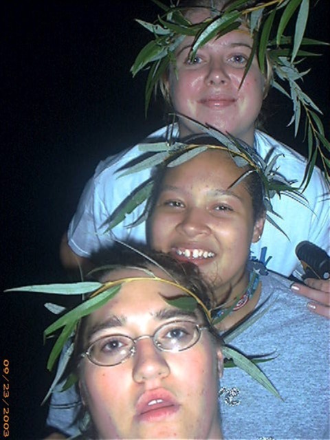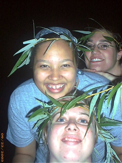 Displaying our beautiful willow crowns! *look on Amie's face....I told you there was something wrong with the water....that look proves it!