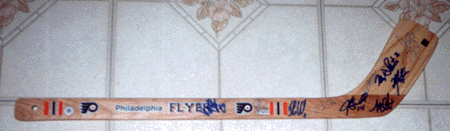 Oh yeah we won this in a raffel. This stick is signed by all the guys who were there. I got Fedoruk, LeClaire, Boosh, Williams, McGillis, and some other people who I don't really mention all that much in the story.