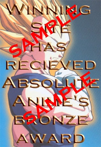 If you think that your site has what it takes, e-mail the url, site name, your name, and your e-mail address here with the subject "award". There are three awards. Listed from worst to best they are bronze, silver, and gold. The bronze is easy to get, the silver is medium, and the gold is hard to get. If your site is really good, and I mean REALLY good, I will give you a special award. I won't be giving many of these out. Here is a sample of the bronze award. "winning site" will be replaced with your site's name. I choose which award you recieve. Good luck! Requirements: Site must be anime related No hentai It must be deemed worthy by me If you win an award, you must link it to my site