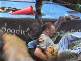 Kenny Mac: - hmmmm.... I think it was at the World's Collide invitation interfederation Card (AKA Filth Event)- I was working a Survivor Series type match with several different Feds. and it came down to 3 final people in the ring.... Myself, Ryker (Now MEWF Indy), and a peice of crap named Tyger..... I was booked to win this match, as was pre-determined before the match even started.... Well Tyger got jealous and didn't like this decision so he "shoot" threw a move on me and dumped me directly on my head - I got temporary amnesia for an hour and got knocked out - I had to get an MRI done on me and everything - pretty scary shit! Also..... Here are some other times which I should have died but didn't.....