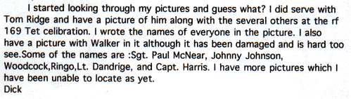 Click Here for one 1/20 soldier's account of SSgt Tom Ridge in Vietnam.