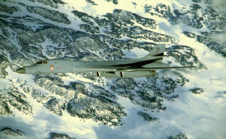 The B-1B's electronic jamming equipment, infrared countermeasures, radar location and warning systems complement its low-radar cross-section and form an integrated defense system for the aircraft.