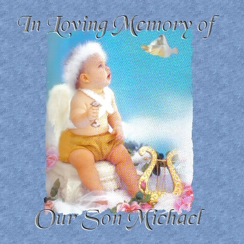 Thank you for coming to see our little angel. Steve and I had a total of 10 miscarriages that were documented. Michael was our first to go to Heaven and meet the good Lord. The reason I have a page on him and not my other nine (except for my dedication page) is because Michael made it to 6 months, was baptized, given a birth certificate and was burried at the Gate of Heaven Cemetary. Our other angels did not make it to the point where we were allowed to do all that was done with Michael. Because of the early stages (below 5 months), we were not told of the sex except for a few. This does not mean that they are forgotten or mean any less to us. Each one impacted our lives and leaves an empty spot within our hearts. We will never know what it will be like to have a "son". To see him nervous calling a girl for the first time, to play baseball or football or any sport, to experience the voice changes, to see him change from a boy to a man, to watch him fall in love, to experience him proposing, getting married and carrying on our family name by having a child.