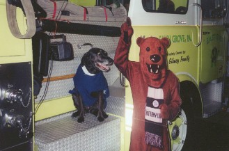 Liberty is a pure bred Chocolate Lab. Her full name is Nestle's Liberty Belle. She was born on 3 December 97 and is owned by Todd & Sara Gibney of Fawn Grove. Liberty can be found riding the top of Engine 3 during most parades and his a major hit with the children along the parade route. Liberty's interests include bird chasing, playing frisbee, swimming, and going down to Cody's house.