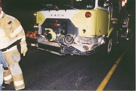 Fall 1997 - The night Rawlinsville Engine 583 was struck by a car while returning from an auto fire.