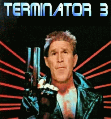 TERMINATOR 3 Bushminator : Can't Be Bargained with. Bushminator: Can't Be Reasoned with. Bushminator: Doesn't Feel Pity. Bushminator: Will Not Listen to the People in a Democracy. Bushminator: Doesn't Feel Remorse. Bushminator: Marijuana has him Paranoid on WMD's. Bushminator: Absolutely, Will Not Stop till US rivals regimes and populations are dead. ....the future is on his hands.