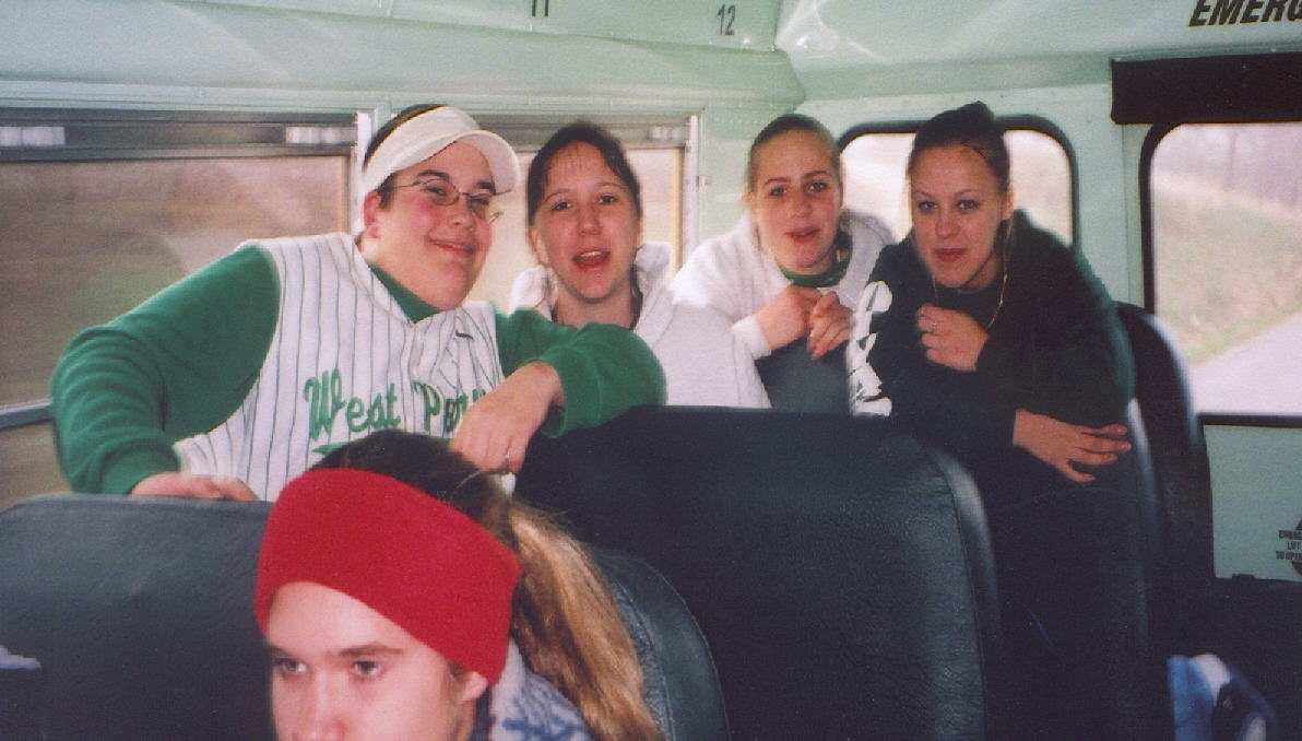 Here is a pic of the team on the bus ride to Waynesboro...please look at Heather Jones' face as she's chewing on a cookie!!