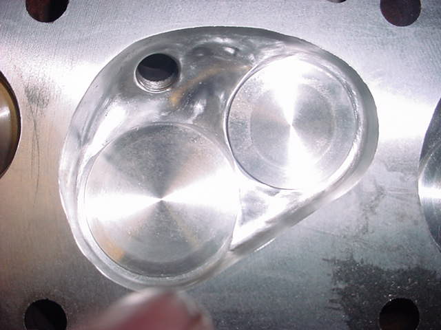 Unshrouded combustion chamber,ported,polished and measured to 66 cc's