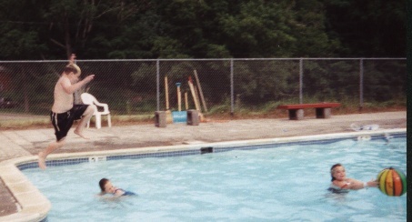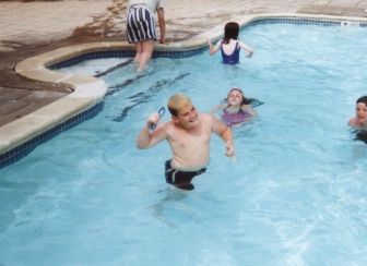 I think he swallowed too much water. Chlorine's gettin' to the brain.