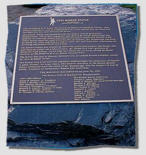 Within the walkway of the memorial stand three huge chunks of anthracite, each with their own bronze plaque. Click below the image for a detailed script.