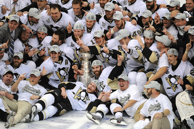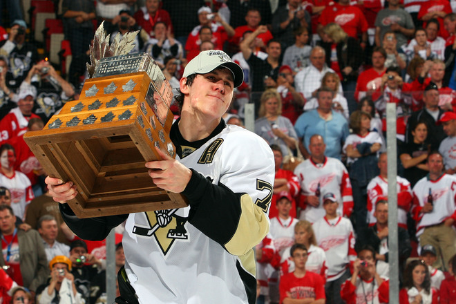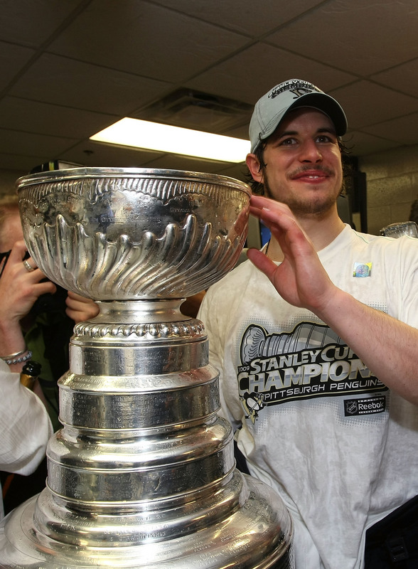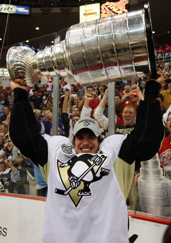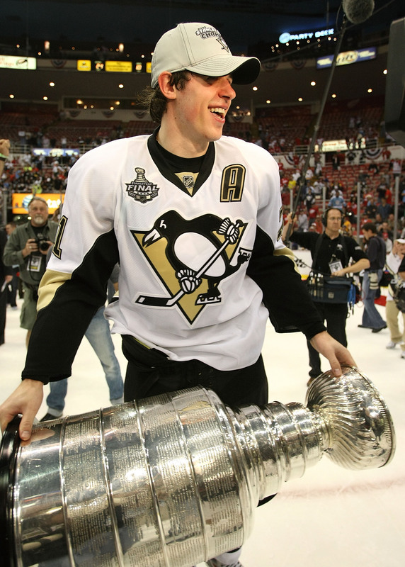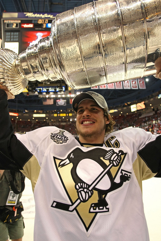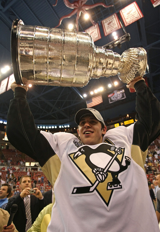 DETROIT - JUNE 12: Sidney Crosby #87 and the Pittsburgh Penguins celebrates with the Stanley Cup after defeating the Detroit Red Wings by a score of 2-1 to win Game Seven and the 2009 NHL Stanley Cup Finals at Joe Louis Arena on June 12, 2009 in Detroit, Michigan. (Photo by Jim McIsaac/Getty Images)