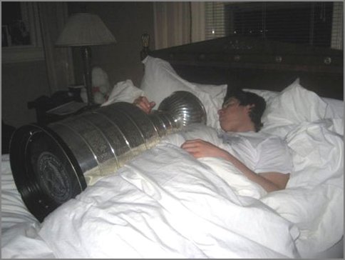 Sidney Crosby sleeping with coveted Stanley Cup.