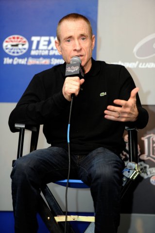 FORT WORTH, TX - NOVEMBER 04: Driver Mark Martin speaks to the media at Texas Motor Speedway on November 4, 2011 in Fort Worth, Texas. Martin will drive the #00 Aaron's Dream Machine Toyota, on a limited basis next season. (Photo by John Harrelson/Getty Images for NASCAR)