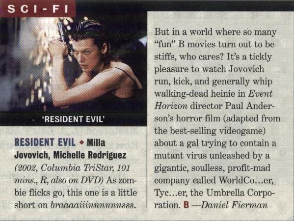Various articles about Resident Evil from Entertainment Weekly magazine