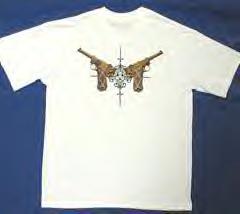 This Resident Evil -CODE: Veronica T-shirt displays two Gold Lugers, which are used by Steve Burnside in the game.