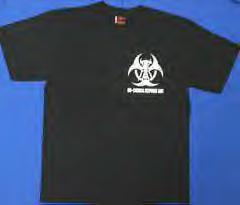 A black Biohazard T-shirt with the a Biohazard symbol on it.