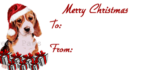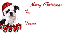 Christmas gift tags for your Christmas presents. Have your names put on dog gift tags. Celebrate Christmas with dog self stick Christmas gift tags.