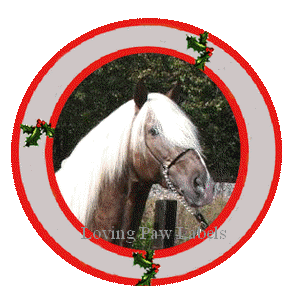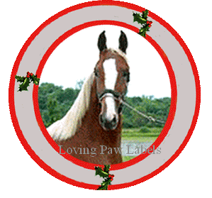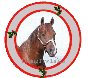 Horse Christmas round address labels for many types of horses. Round decorative Christmas labels. Quarter horse Christmas address labels and many more. (These labels are accepted at the post office for return address "only".)