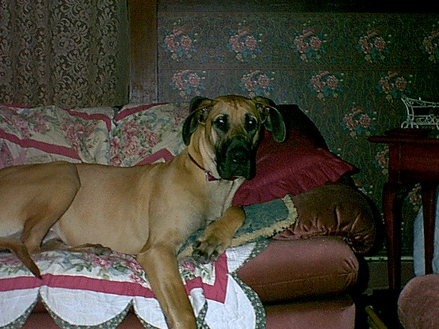 This is me relaxing on my Dad & Mom's couch after a hard day playing, aren't I cute ?