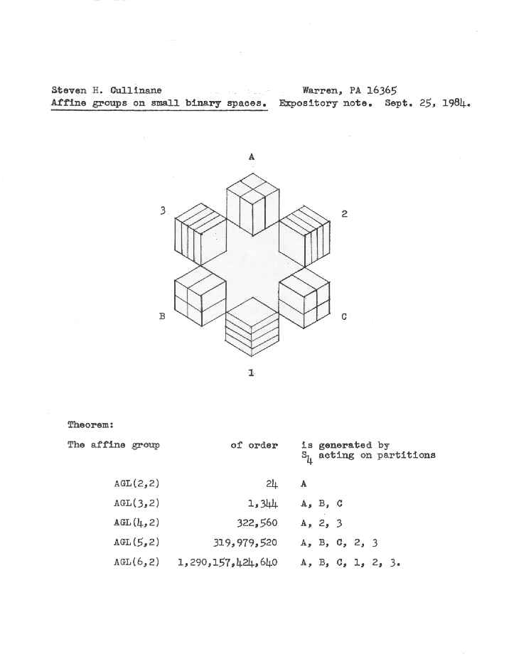 - 84-09-25... Affine groups on small binary spaces