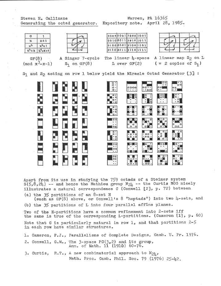 - 85-04-28... Generating the octad generator