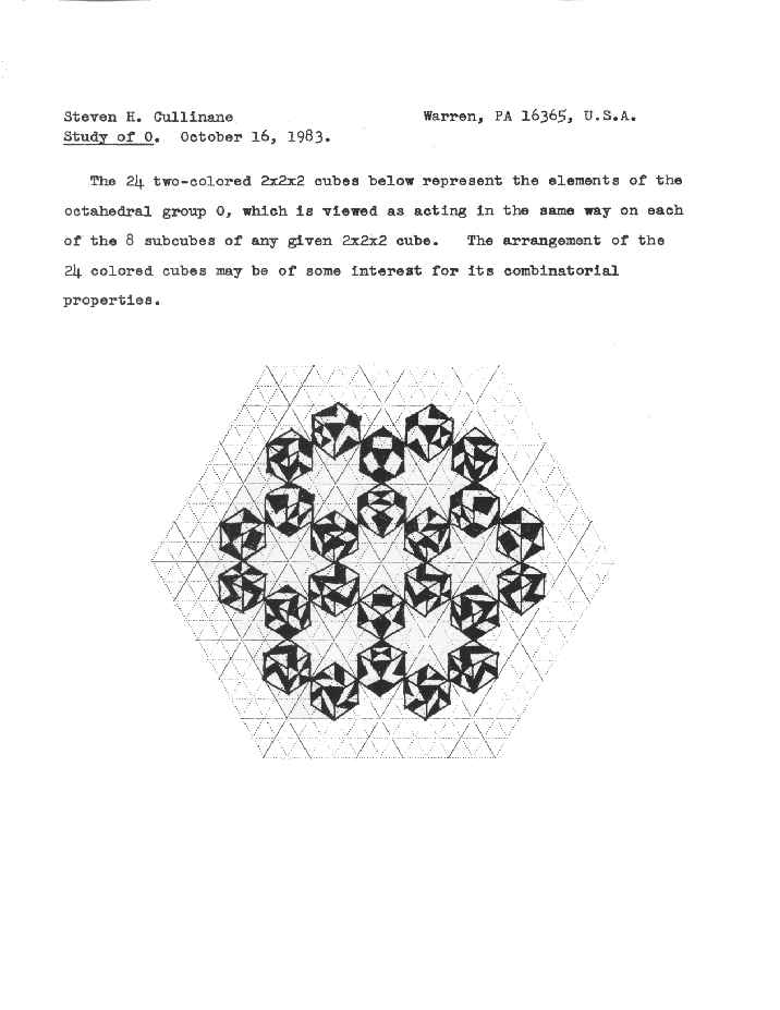 - Block designs of a different sort -- graphic figures on cubes. See also the University of Exeter page on the octahedral group O.