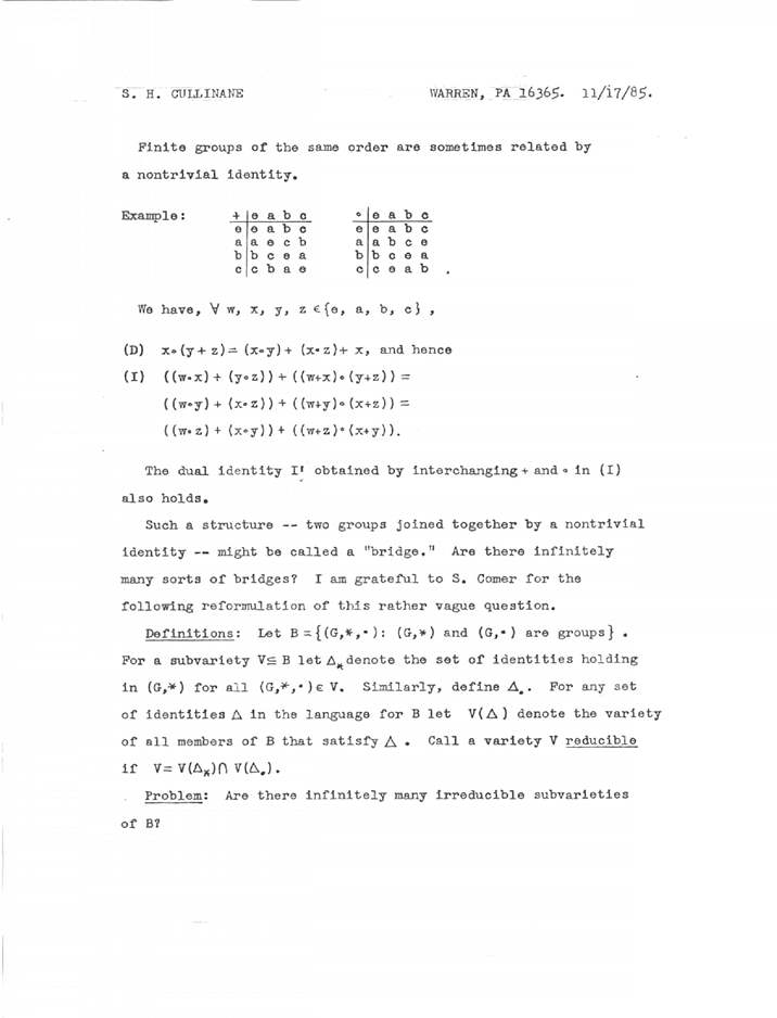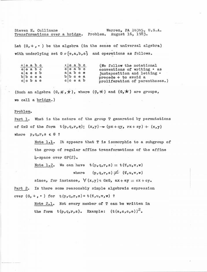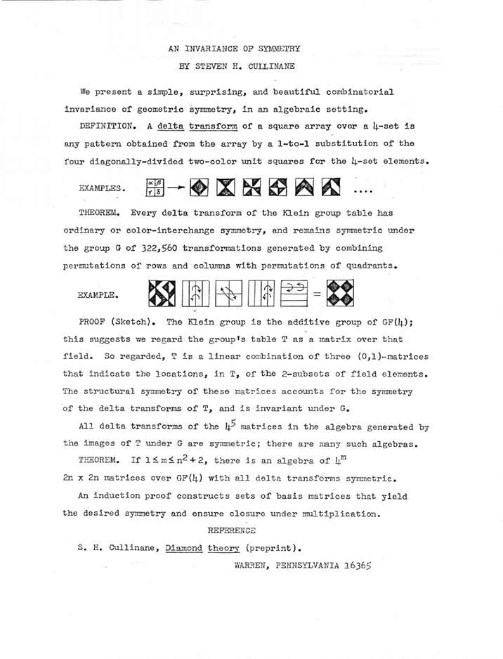 - 78-??-??... Research announcement (4x4 case of diamond theorem and algebraic generalization)