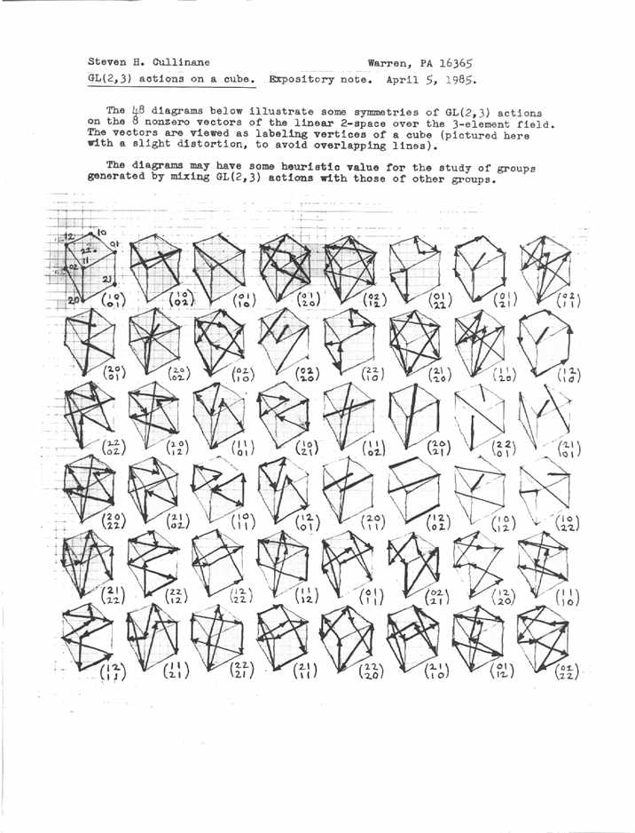 GL(2, 3) actions on a cube
