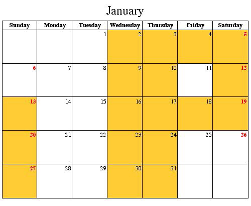 Click on the highlighted days to view information about the event