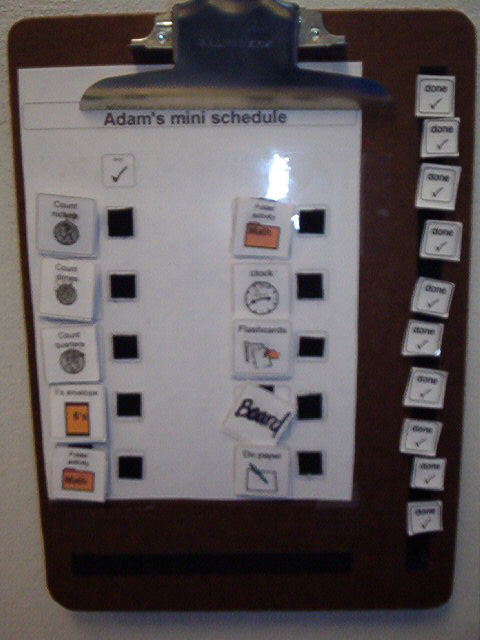 I velcro different tasks on this schedule depending what the student needs to work on each day.