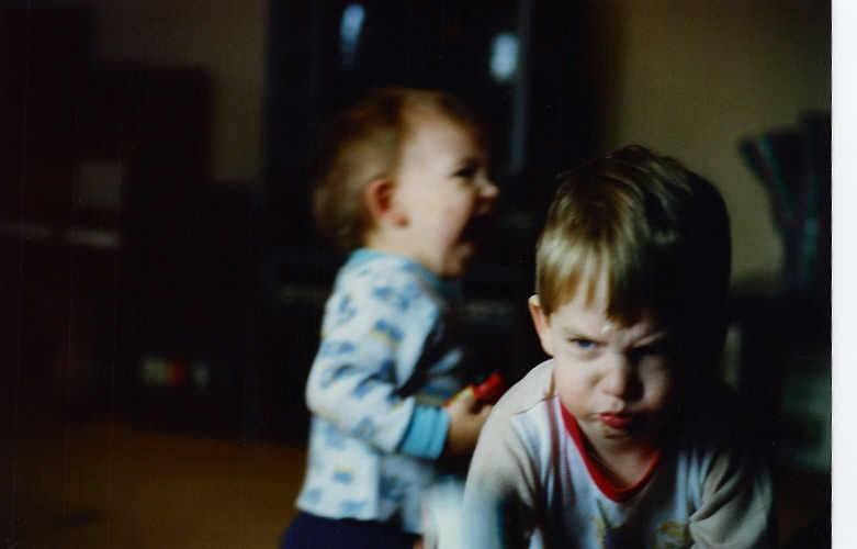 Eric screaming in the background while I make an angry face. I probably ate Eric's food or something to get him mad. And since there would've been so much of it I would've felt sick. Cause I do look like I'm going to vomit.