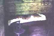 The next structure on the site is what is now the north room of the cabin. The room is made of white cedar. Historians use the date above the fireplace lintel as the date of the cabin--1698. This room is a combination of English shaped design and corners joined with Scandinavian-style double notches.