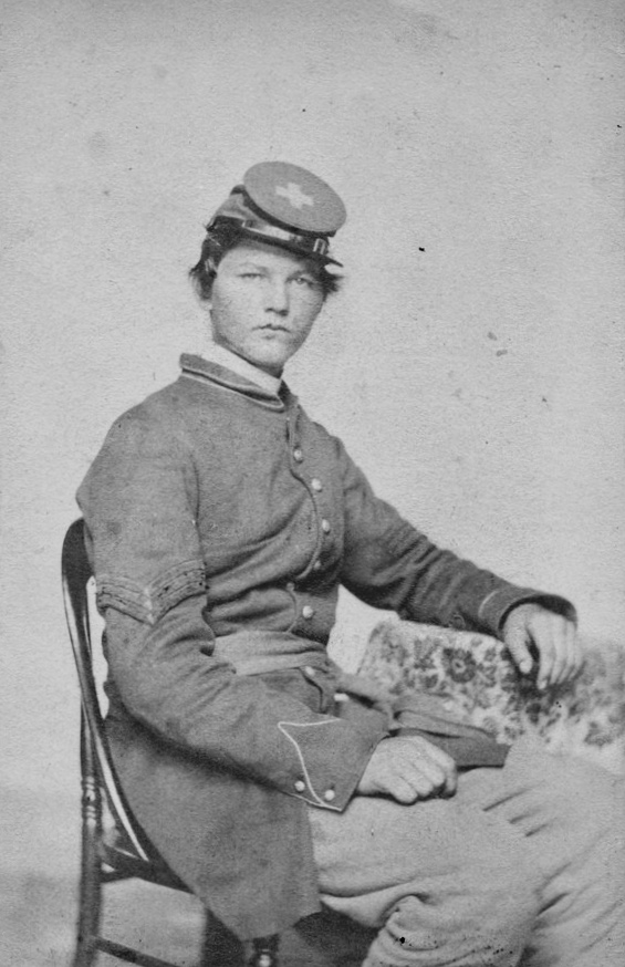 | Photo of of Sgt. Gustavus Adolpho Pommer Company H , 23rd Pennsylvania Volunteers, also known by their nickname, “Birney’s Zouaves”. He was born in Missouri in 1844. He enlisted into the 23rd Pennsylvania at the Schuylkill Arsenal in Philadelphia on August 10th 1861 .On September 8th 1861, he moved with the Regiment to Washington D.C, where he was encamped just three miles north of the Capitol on “The Queen’s Farm” at Camp Graham . He was there with the Regiment during the cold winter months and in December of 1861; Typhoid Fever broke out within the Camp which resulted in the Death of Fifty-One men of the 23rd Pennsylvania Volunteers. It was decided on March 12th 1862 to move the camp to higher ground in Bladensburg, Maryland to rid the epidemic and ready the Soldiers for campaign. The 23rd Pennsylvania moved to Bladensburg and were encamped at Camp Clark . He was Wounded at The Battle of Fair Oaks Virginia on May 31st 1862, near Richmond and again at The battle of Cedar Creek Virginia on October 19th 1864. When his enlistment in the 23rd Pennsylvania expired on September 8th 1864, he reenlisted and was transferred for the remaining 8 months to the 82nd Pennsylvania Volunteers. He was mustered out of Service on July 13th 1865. After the War, He moved to Junction Kansas where he was a School teacher. Gustavus Pommer died on March 16th 1885. He is buried at Bellefontaine Cemetery in St. Louis, MO in Plot 24-33 ,Lot 2491.