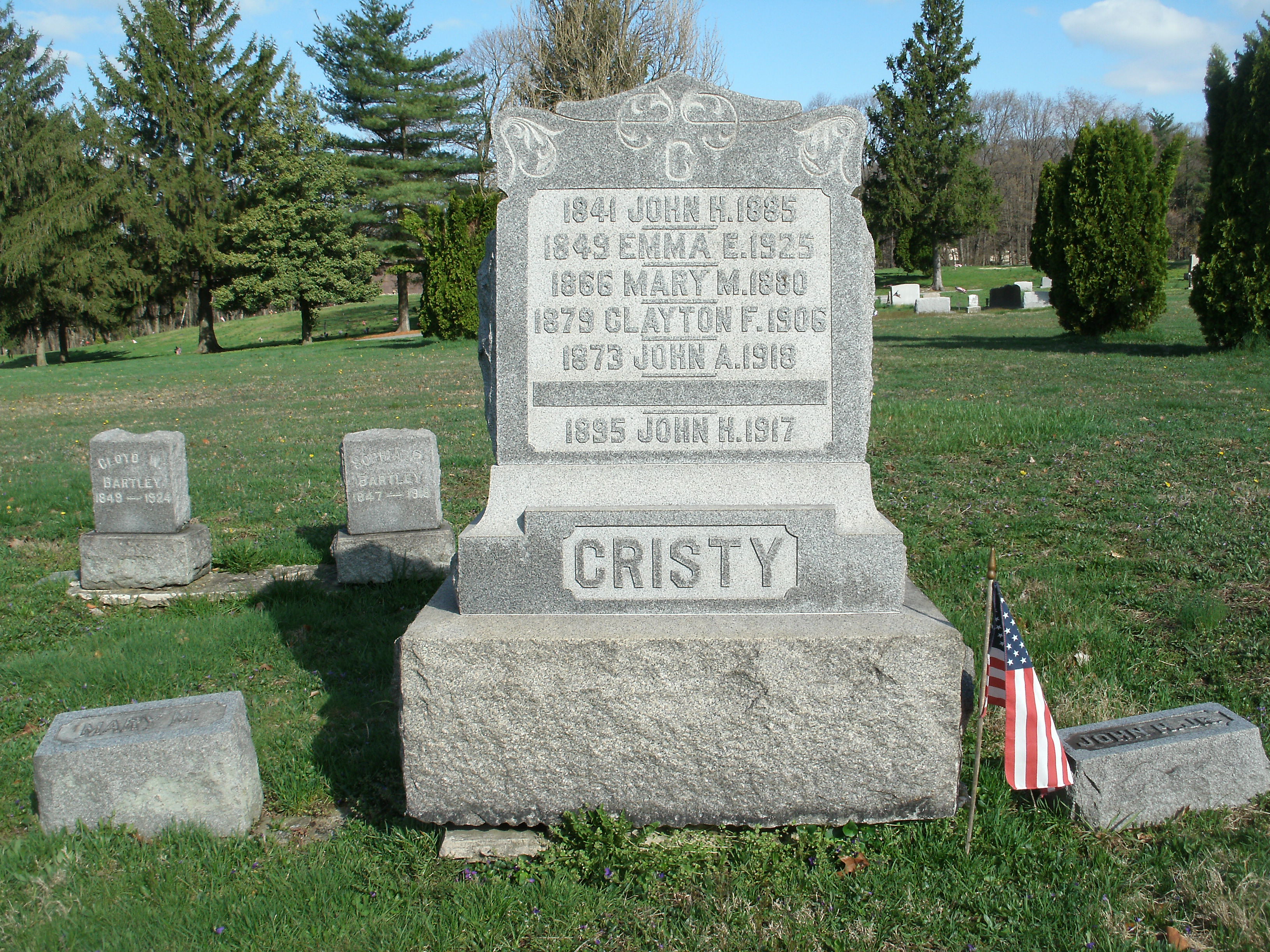 | The Grave of Private John Cristy, Company I, 23rd Pennsylvania Volunteers, "Birney's Zouaves". John was born in Columbia,PA in 1841. He enlisted on September 1st 1861. On September 8th he moved with the Regiment to Washington D.C. for the defences of the Capital against possible Rebel Invasion. The 23rd was encamped at "The Queen Farm" owned by Jacob Queen and they made Camp Graham thier home. Typhoid Fever broke out in November and December of 61 and over fifty men of the unit died forcing them to move to higher ground near Bladensburg, MD. There they established Camp Clark .He was wounded at the Battle of Cold Harbor on June 1st 1864. He served his three year enlistment and was mustered out of service on September 8th 1864. After the war he returned to Columbia PA. He died there on November 12th 1885. He is buried at Laurel Hill Memorial Gardens in The Donegal Section, Lot 56, Grave 6.