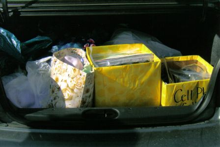 Some of the blankets, books, and cell phones donated to the Women's Shelter collected at the University