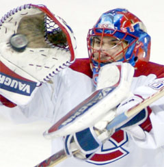 José Théodore was drafted 44th overall in the 1994 Entry Draft by the Montréal Canadiens. On February 21, 1996, he made his NHL debut with nine minutes of relief against the Whalers. In 1996-97, José played 16 games and won his first game on November 6 against the Mighty Ducks. In the playoffs that year, José played two games including a 56-save performance in a 4-3 triple overtime victory over the Devils. After spending the 1997-98 regular season in the AHL, José played in three playoff games for the NHL Canadiens. In 1998-99, José played 18 NHL games and recorded his first shutout on April 7 against the Hurricanes. In 1999-2000, José joined the NHL full time and shared the goaltending duties with Jeff Hackett. In 30 games, José posted five shutouts and ranked second in save percentage with a 91.910 mark (Belfour finished first at 91.916). In 2000-01, José went 20-29-5 with a 2.57 goals-against average in 59 games for the Canadiens. That season, he won the Canadiens' Coupe Molson. He recorded his first goal, only the eighth by a goaltender in NHL history, in a 3-0 shutout over the Islanders.