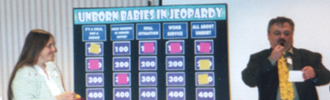 During the opening general session of the West Virginians for Life Convention, Gary Cangemi gave his “Umbert the Unborn: A Womb with a View” presentation. In an afternoon workshop session, participants were able to test their knowledge of the pro-life issue with a game of Unborn Babies in Jeopardy. This lively contest is particularly suited for use with teen audiences.