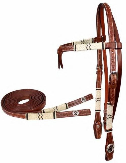 Size: HorseDescription:Beautiful western show bridle. This bridle has rawhide accents. Complete with reins.