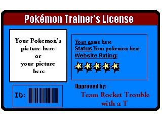 Remember to tell us which of the 4 choices you'd like, and the Pokemon that you'd like on your license.