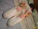 Here Coffecat continues playing with the content of the bedroom drawer, in bare feet now, she adjusts the elastic bands for comfort and, enjoying the moment, she pointes her feet and I marvel her arch. Chuak! Could not avoid jumping into kissing and licking the tender soles of her precious feet. Man, I'm getting aroused again just by typing these words!
