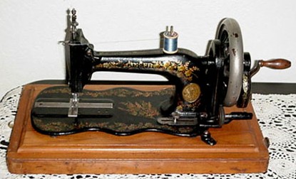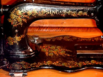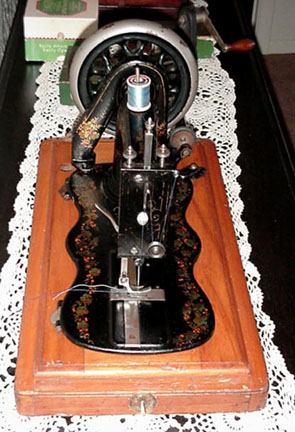 This is a good overall view of the machine. Notice how there are long horizontal plates on either side of the needle. The transverse shuttle goes back and forth under these plates. |  |