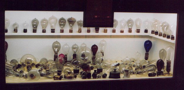 Here we can see the display of Edison screw based carbon lamps. There is everything imaginable from Sawyer Man to Edison.