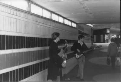 Busking in a subway, Earlsdon 1988.
