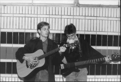 Simon and Bez go busking, Autumn 1988.