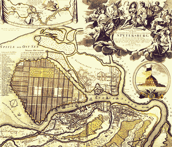 | La población crece rápidamente en diez años se levantan miles de edificios, en 1725 año de la muerte de Pedro I la ciudad cuenta con un censo estable de 75000 almas, pero el frenético crecimiento se ve paralizado por la desaparición de su precursor, durante los fugaces reinados de Catalina I (1725-27) y Pedro II (1727-30) la ciudad se estanca e incluso parte de la nobleza que había sido obligada a establecer residencia en San Petersburgo comienza a abandonarla progresivamente, pero con la llegada al poder de Ana Ivanovna (1730-40), Isabel Petrovna (1741-61) y Catalina II (1762-96) la ciudad comienza a florecer. |
