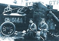 La revolución de febrero de 1917 (marzo según el calendario gregoriano) constituye la segunda revolución democrática burguesa en Rusia. La causa directa de su estallido fueron las enormes pérdidas humanas de Rusia durante la I Guerra Mundial (de 6 a 8 millones de muertos, heridos y prisioneros), así como el descontento general provocado por el hambre y el caos económico. De nada sirvieron las críticas de la Duma a la ineficacia del gobierno y a la perniciosa influencia de Rasputín sobre la familia real. |