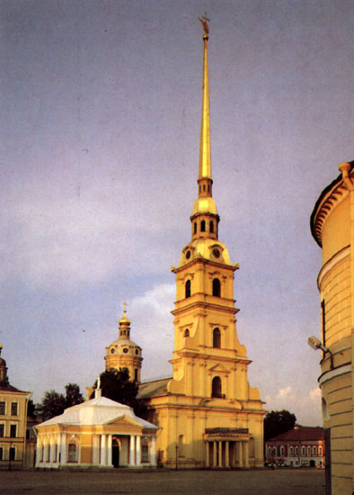 ![]() Basilica de Pedro y Pablo En 1816 se crea el comité de construcciones y de trabajos hidráulicos que decide, bajo la supervisión de Carlo Rossi organizar la ciudad en un sistema de conjuntos arquitectónicos unificados. |