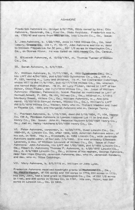 Baltimore. MD; died Aft. 1775 in Wilkes, GA. + 12 ii. William Ashmore, born Abt. 1731 in