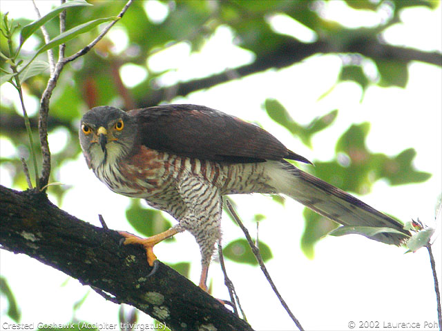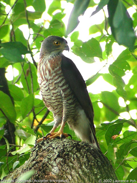 This is a Crested Goshawk (Accipiter trivirgatus). Size 40-46 cm (16-18 in).